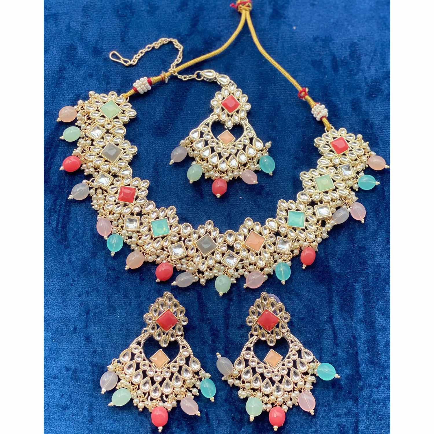 Be the first to review “Artificial Jewellery Set Of Crystal & Beads Necklace With Earrings & Maang Tika By Itrend Fashion”