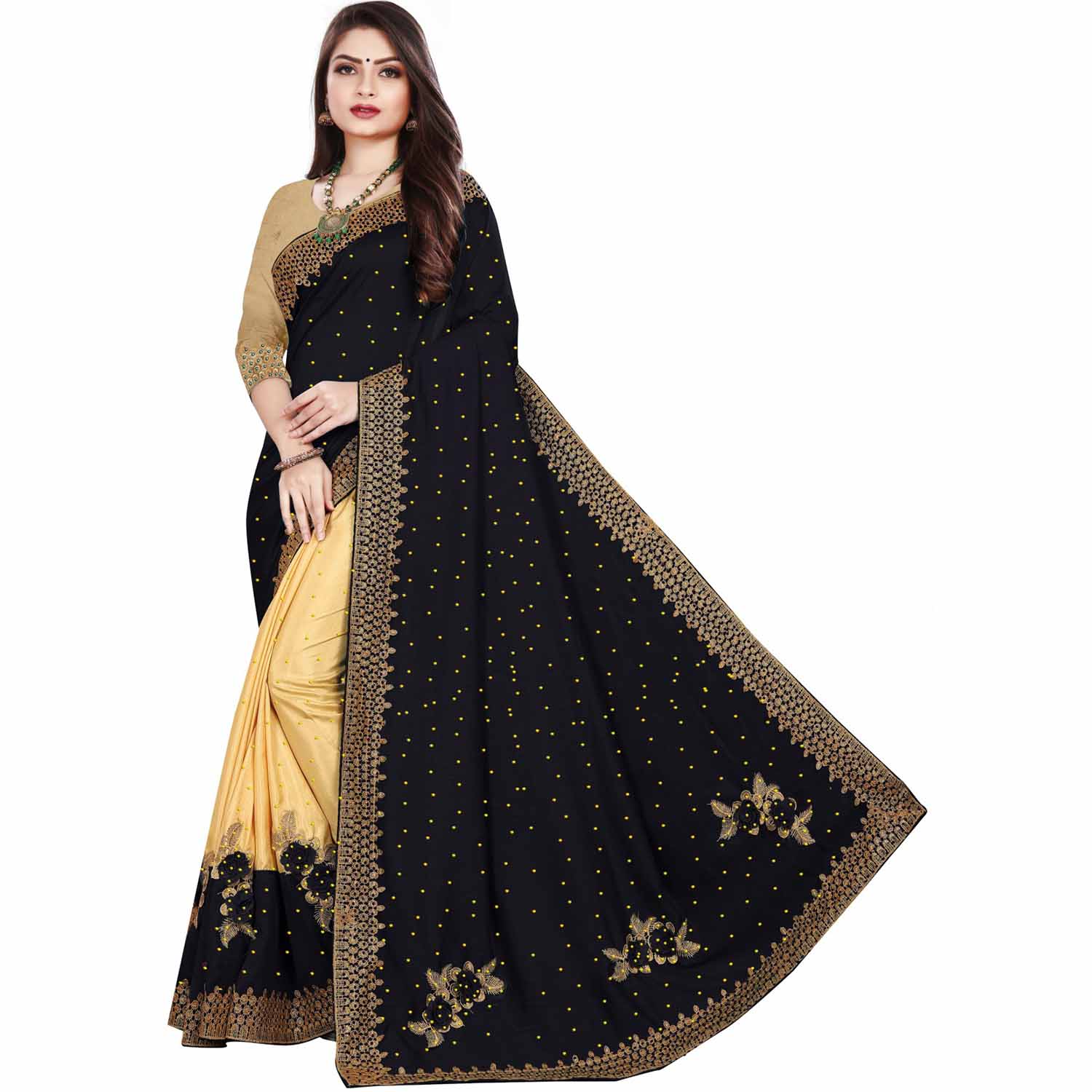 Real attractiveness will come out of your dressing style with this silk trendy saree. The ethnic embroidery work to your apparel adds a sign of magnificence statement with a look. Comes with matching blouse. (Slight variation in color, fabric & work is possible. Model images are only representative.).