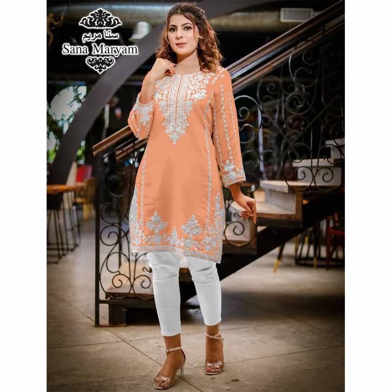 Top Heavy Faux Georgette Fabric With Heavy Embroidery & Pearl Work In Daman , Sleeves And Neck