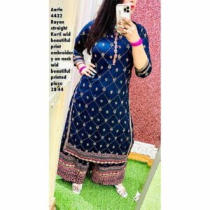 Rayon Straight Kurti Wid One Pocket Embroidery On Yolk Frill Sleeves Wid Rayon Check Pants For Women By Simishop