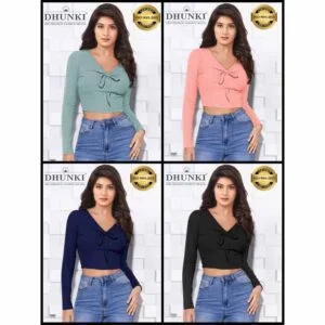Set Of 3 Heavy Satin Mock Neck Top With Digital Print Work For Women By Dhunki Fashion